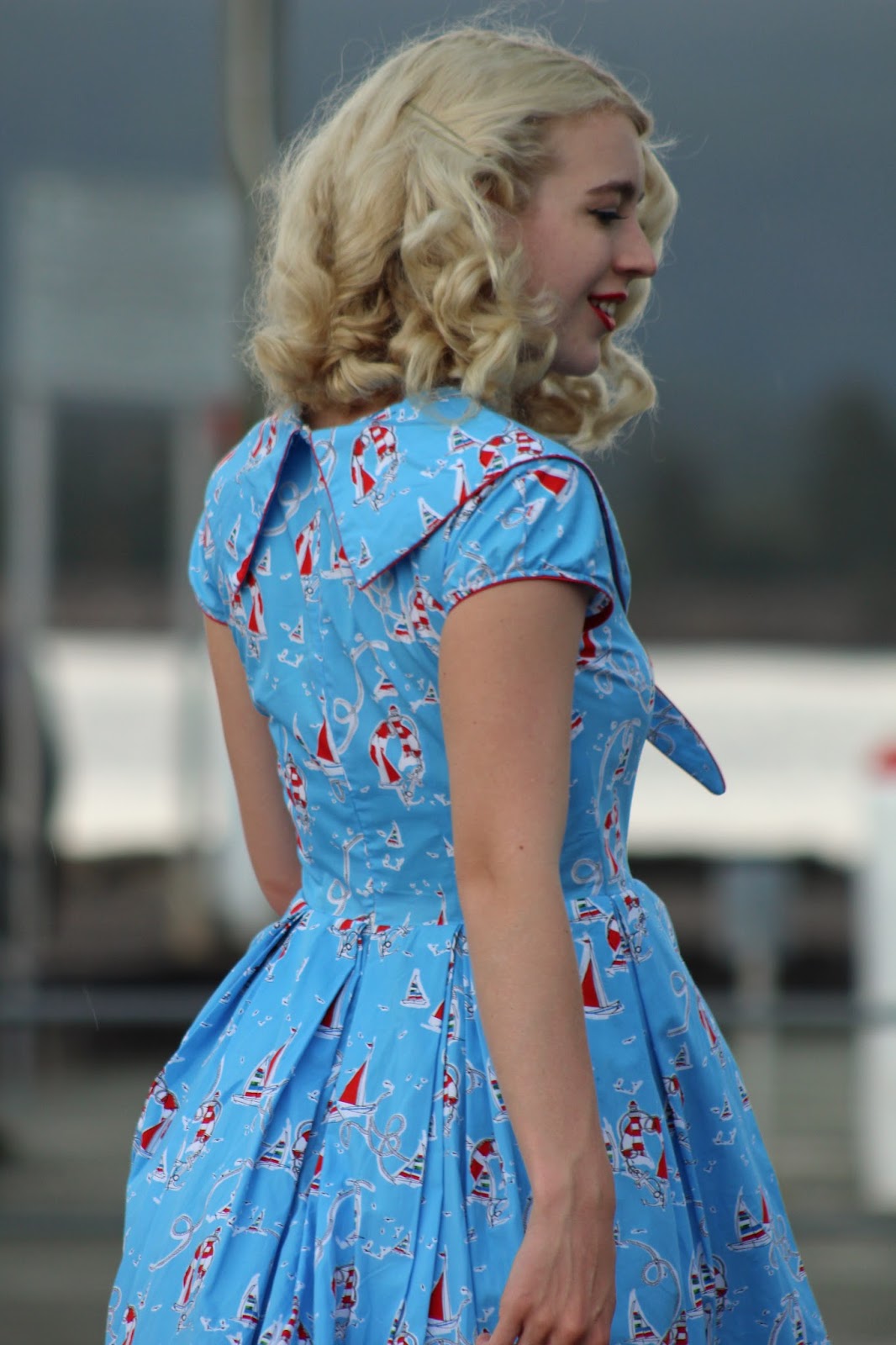 What an absolutely fantastic nautical themed dress! I love the pattern, shape, pattern, it's all perfect! I adore it and you!